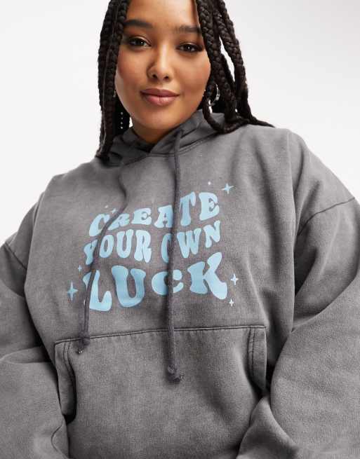 Heartbreak Plus create your own luck graphic hoodie in washed black Very well made.