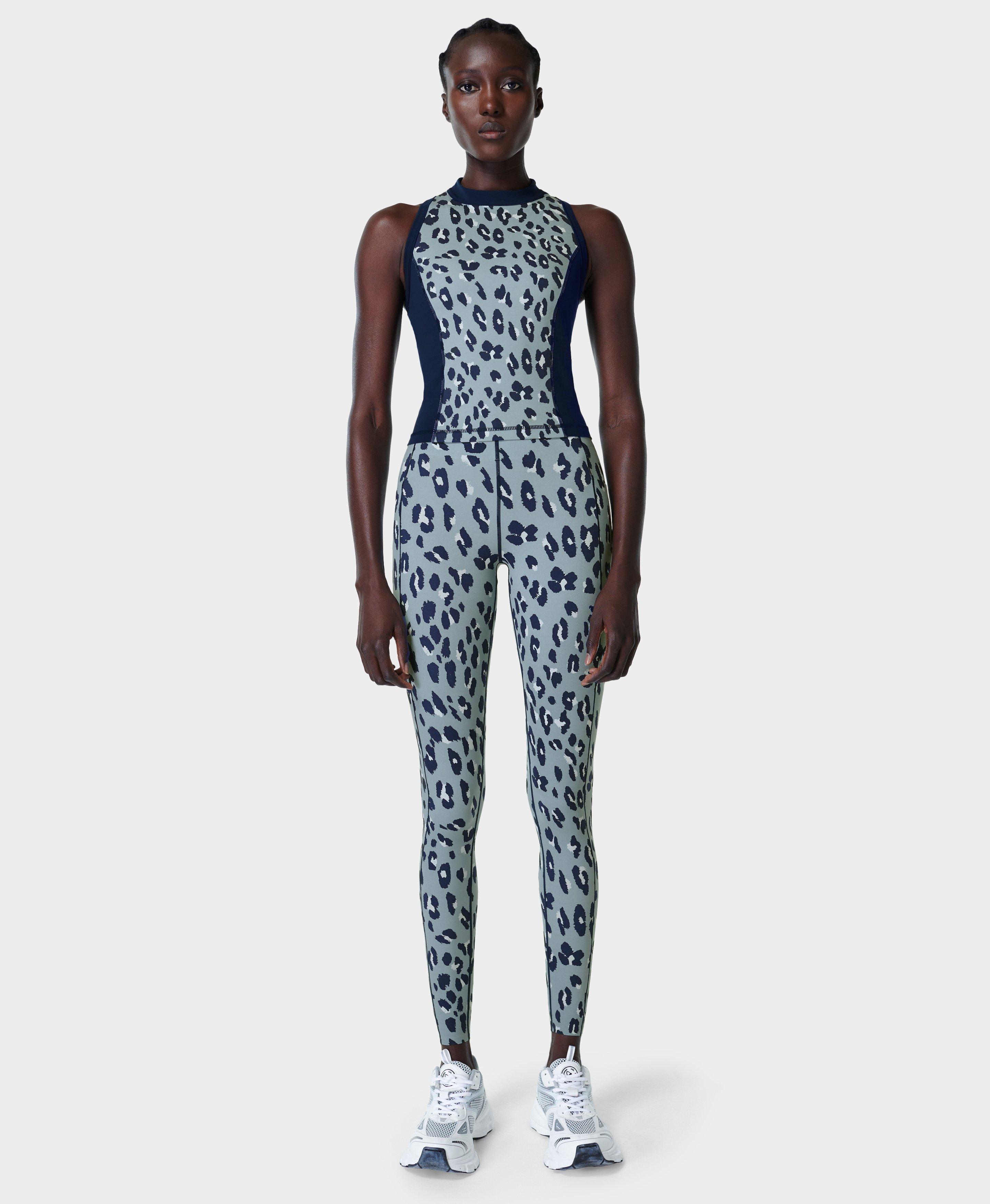 Power Zip Back Workout Tank Top Blue Cheetah Print Women s Very well made.