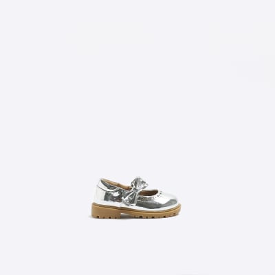 Mini girls silver bow mary jane shoes River Island Very well made.