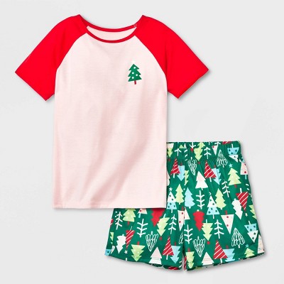 Girls 2pc Christmas Tree Short Sleeve Top And Shorts Pajama Set Very well made.