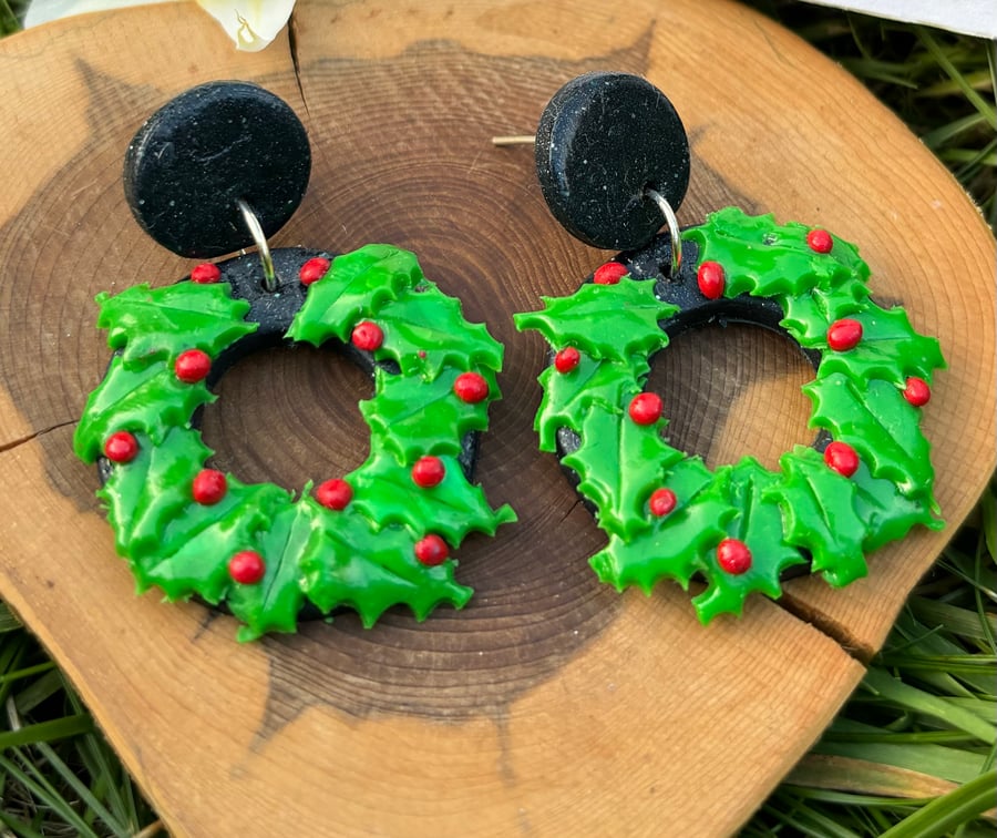 Christmas Wreath Polymer Clay Earrings 2 Very well made.