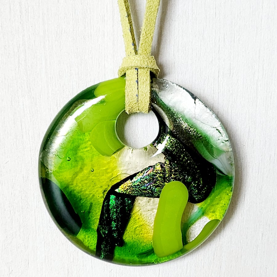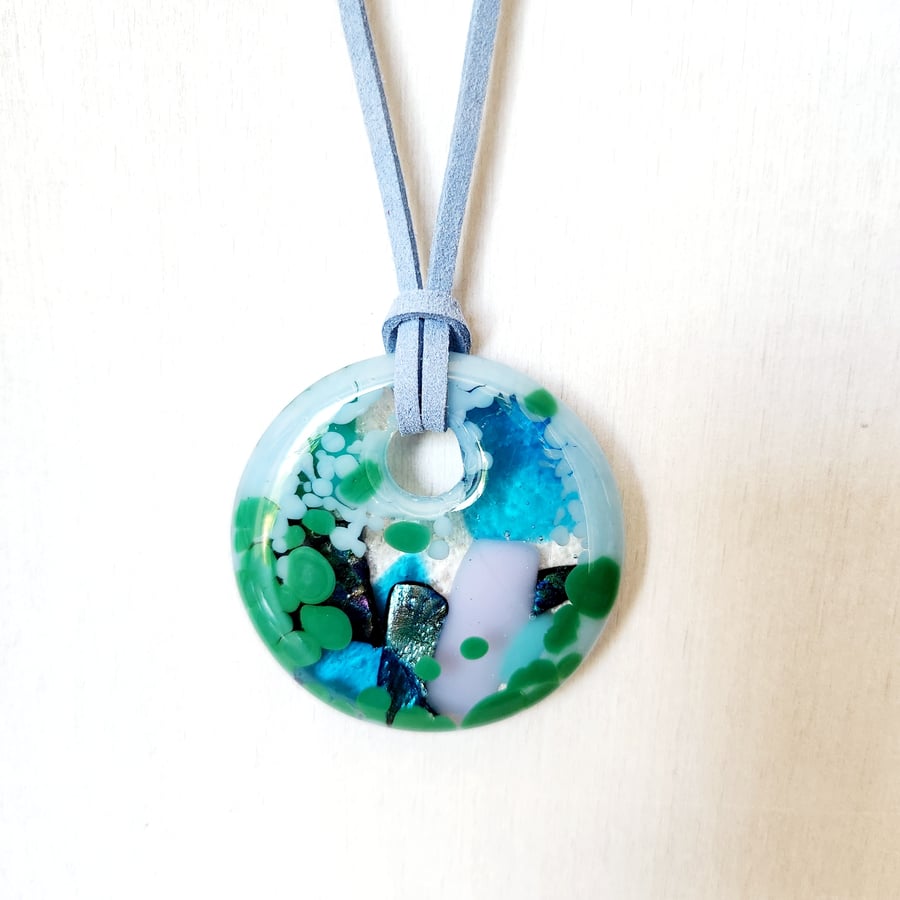 Fused Glass Cast Pendant chunky necklace Lage Folksy Very well made.