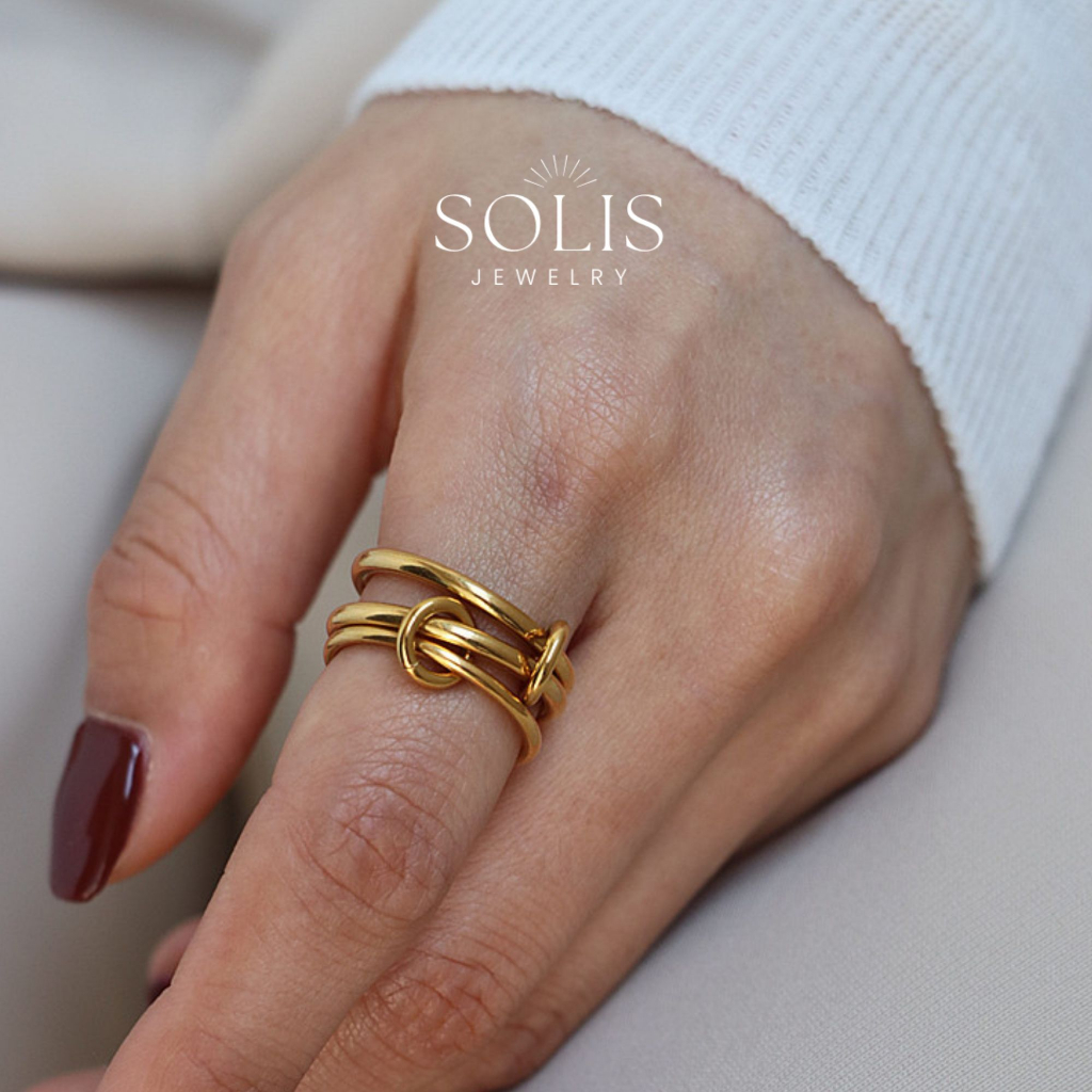 Flashbuy Chunky Gold Color Metal Geometric Rings for Women Statement Exaggerated Adjustable Elastic Rope Ring Fashion Jewelry Very well made.