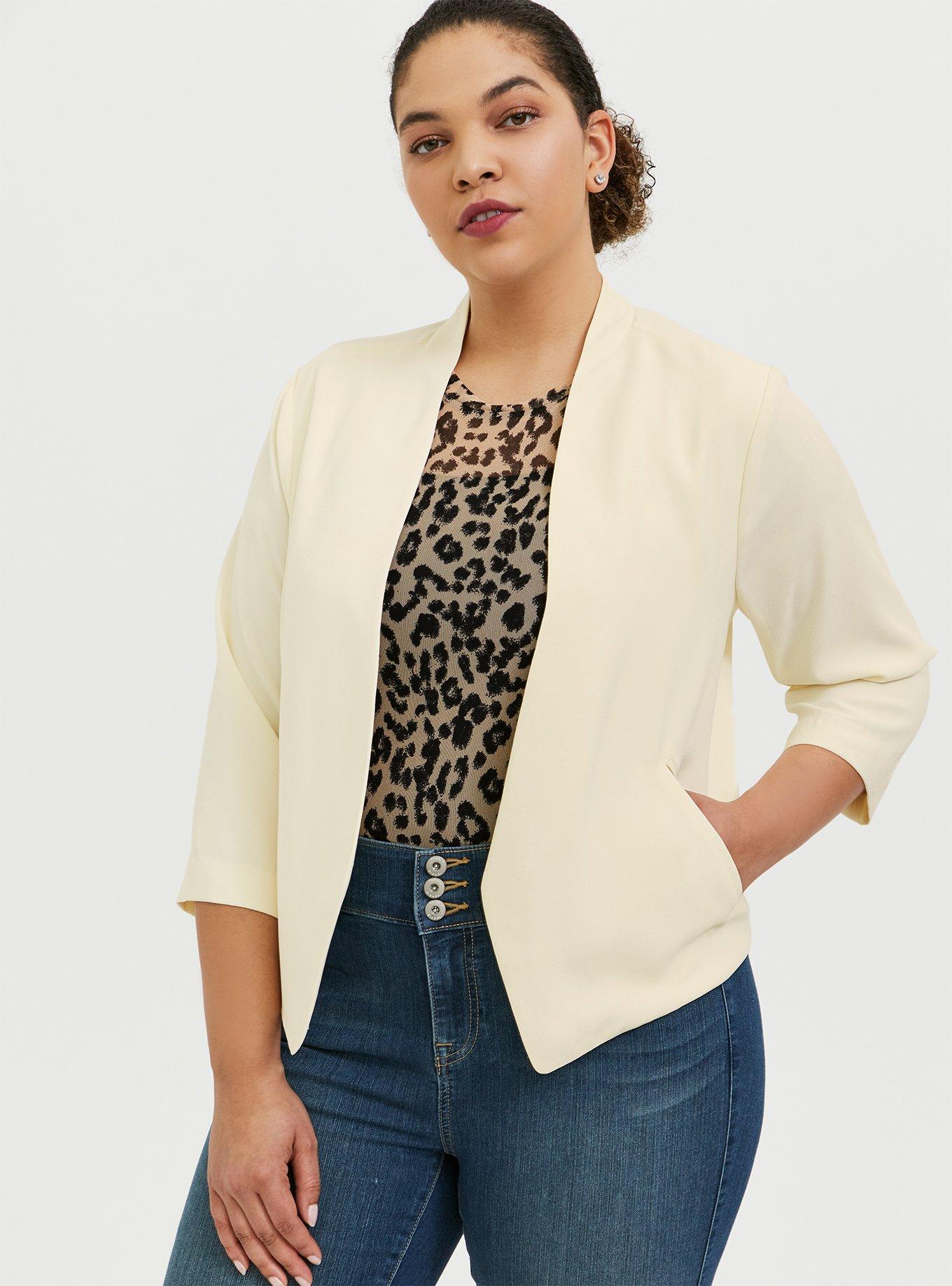 Plus Size Stretch Wool Single Button Blazer Very well made.