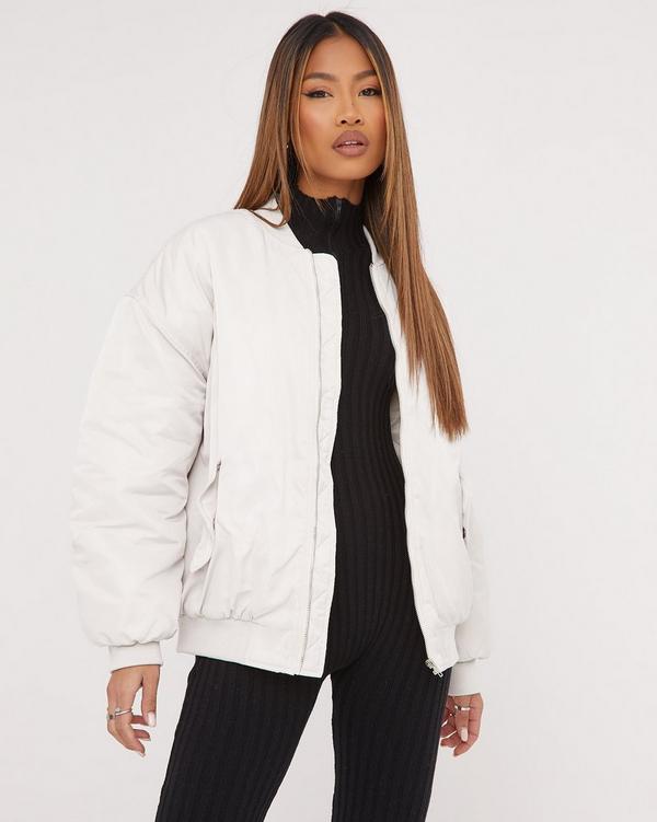 Oversized Pocket Detail Bomber Jacket In Cream Very well made.