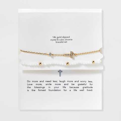 14k Gold Dipped Cubic Zirconia Cross on Chain and Crystal Stretch Bracelet Set 2pc Gold White Very well made.