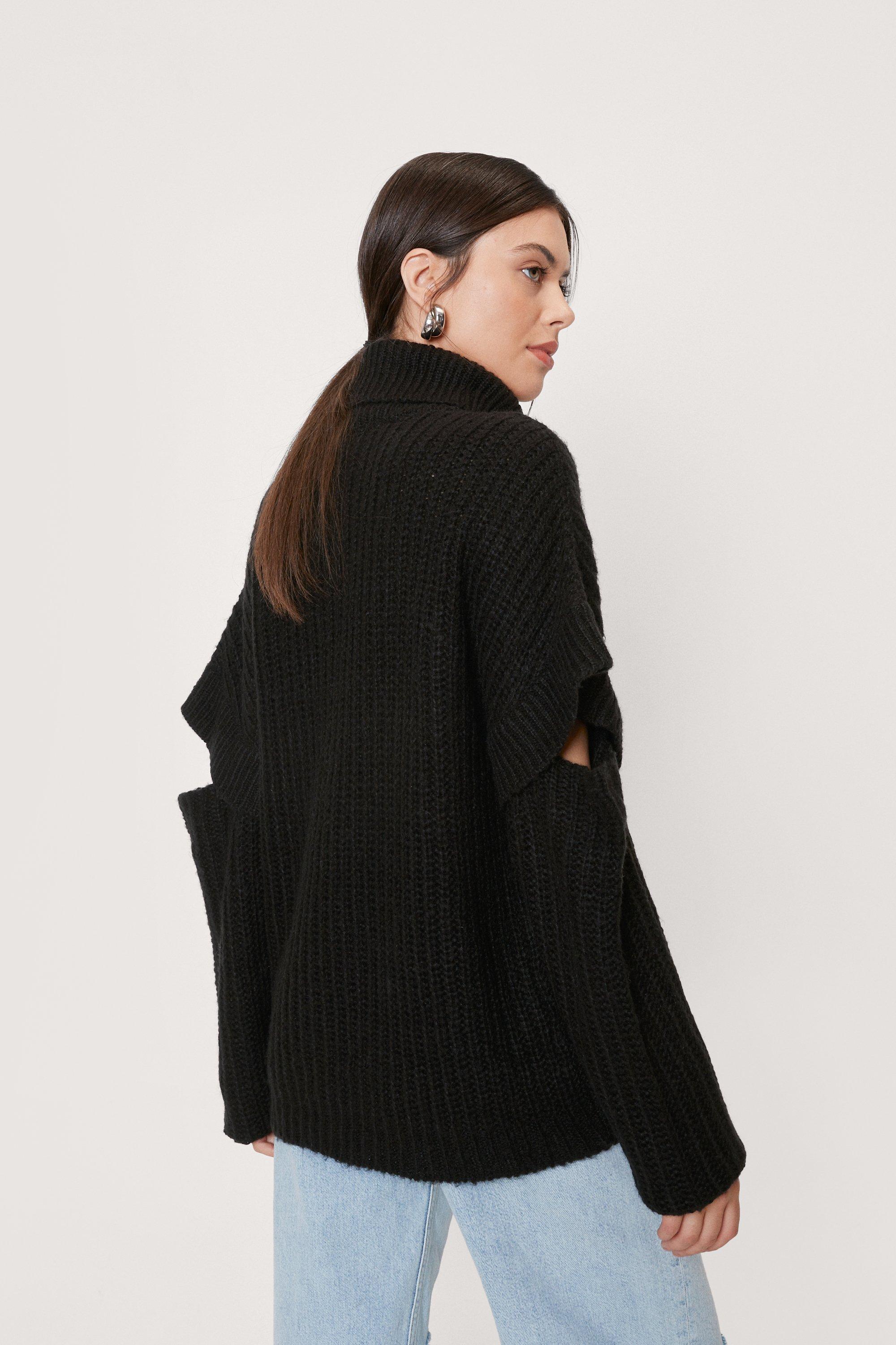 Knitted Turtleneck Cut Out Sleeve Sweater Very well made.