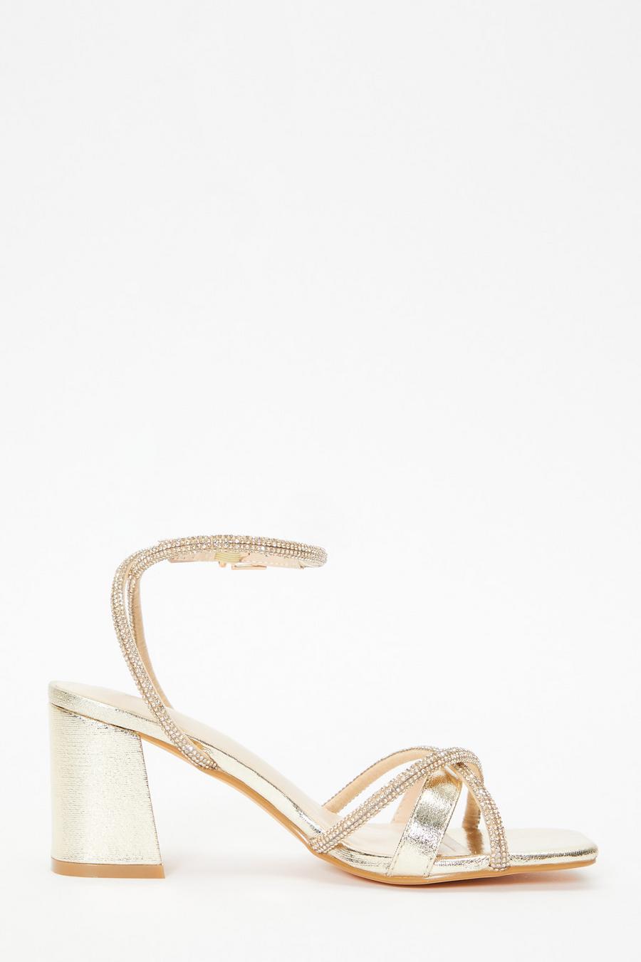 Gold Foil Diamante Block Heeled Sandals Quiz Clothing Very well made.