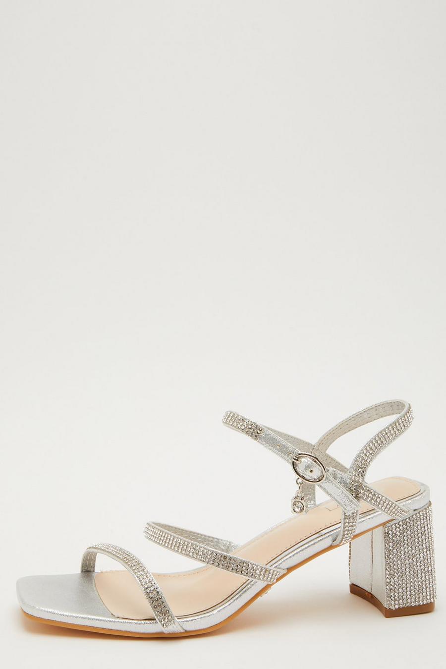 Silver Diamante Block Heeled Sandals Quiz Clothing Very well made.
