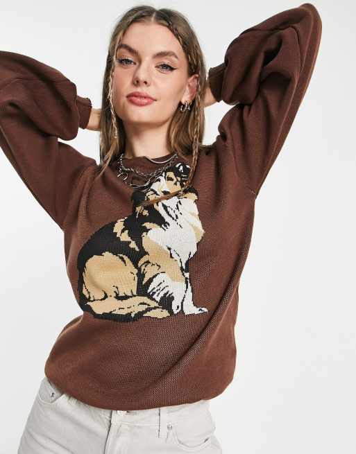 Heartbreak oversized jumper with dog print in chocolate brown Very well made.