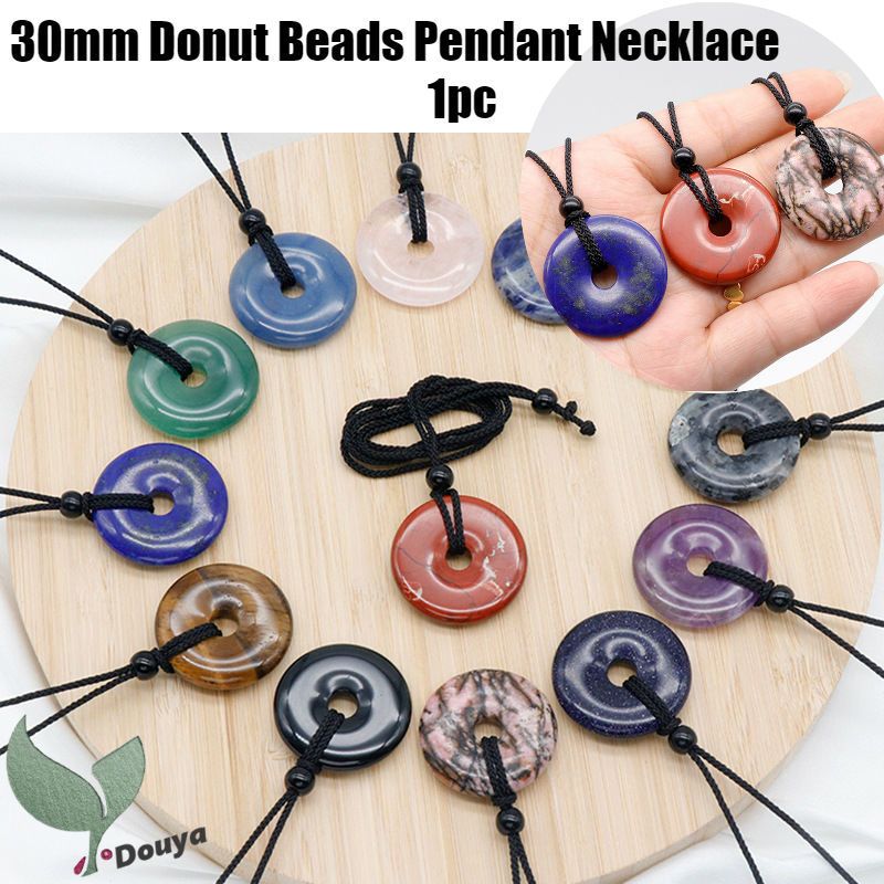 Gemstone 30mm Donut Beads Reiki Chakra Pendant Necklace Handmade Very well made.