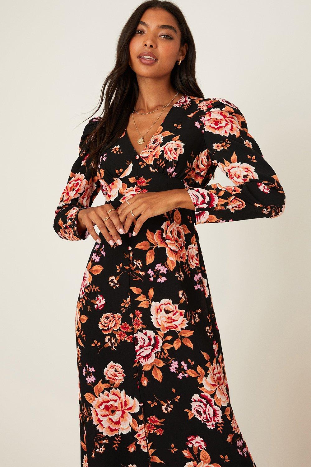 Dresses Black Floral Button Down Midi Dress Dorothy Perkins Very well made.