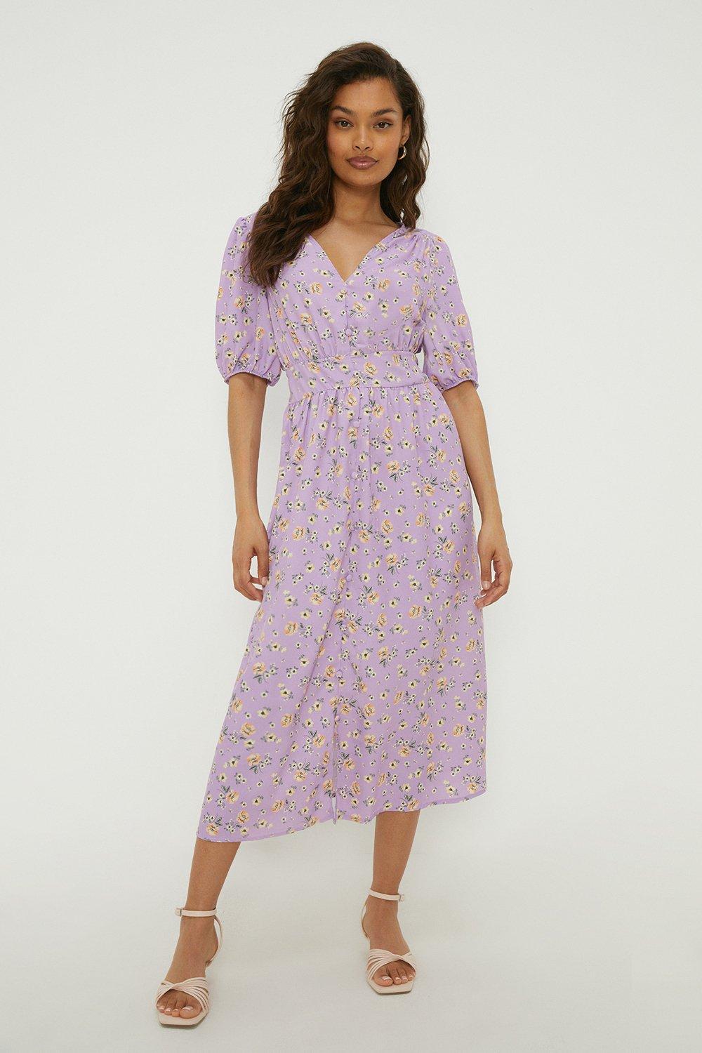 Dresses Petite Purple Ditsy Print Puff Sleeve Midi Dress Very well made.