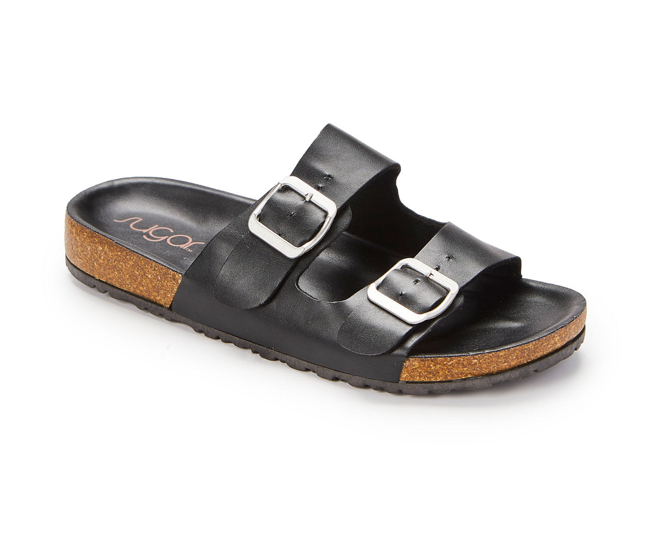 Women s Black Double Buckle Cork Sole Sandal Big Lots Very well made.