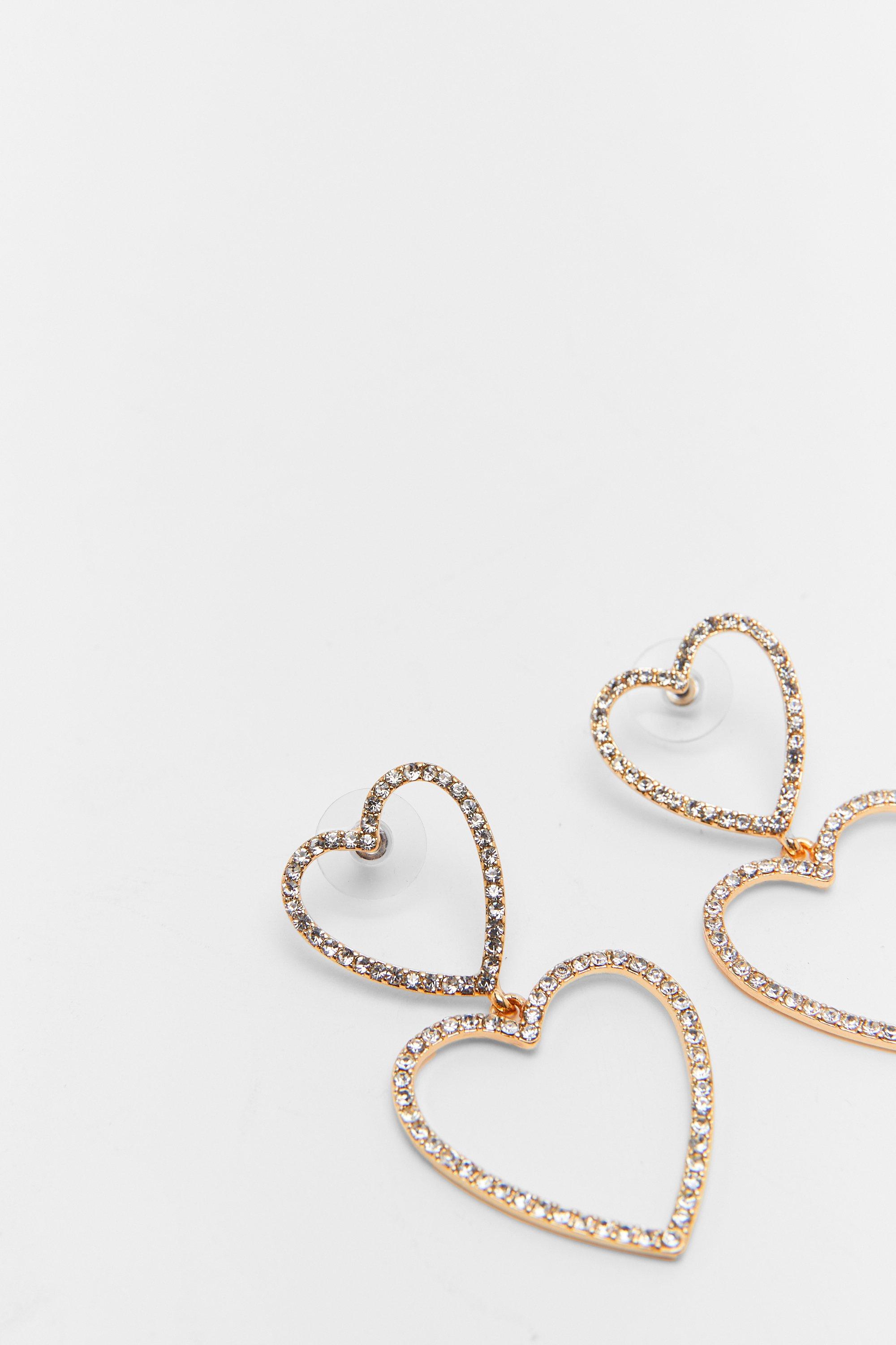 Diamante Double Heart Drop Earrings Nasty Gal Very well made.