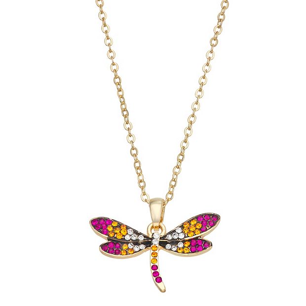 Annabelle Jones Gold Tone Crystal Dragonfly Pendant Necklace Very well made.