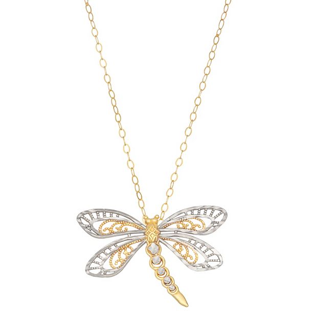 Au Naturale 14k Gold Cubic Zirconia Dragonfly Pendant Necklace Very well made.