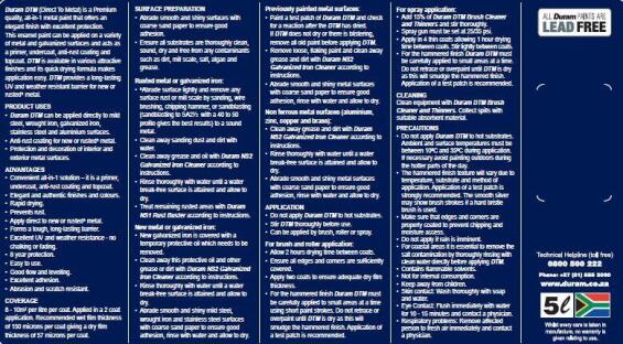 Metal Paint DURAM DTM Smooth Black 5l LEROY MERLIN South Africa Very well made.