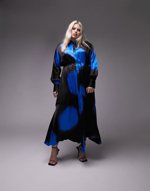 Topshop Curve Vestito camicia midi nero con stampa di eclipse cobalto Very well made.