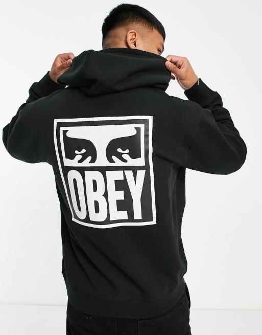 Obey Felpa con cappuccio nera con stampa di occhi e logo sul retro Very well made.