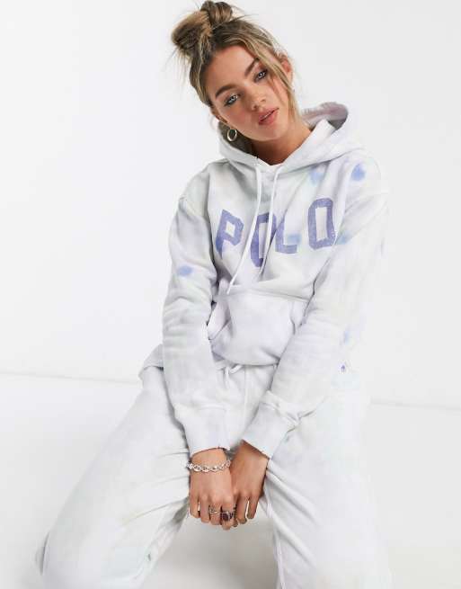 Polo Ralph Lauren Felpa bianca tie dye con cappuccio e logo Very well made.