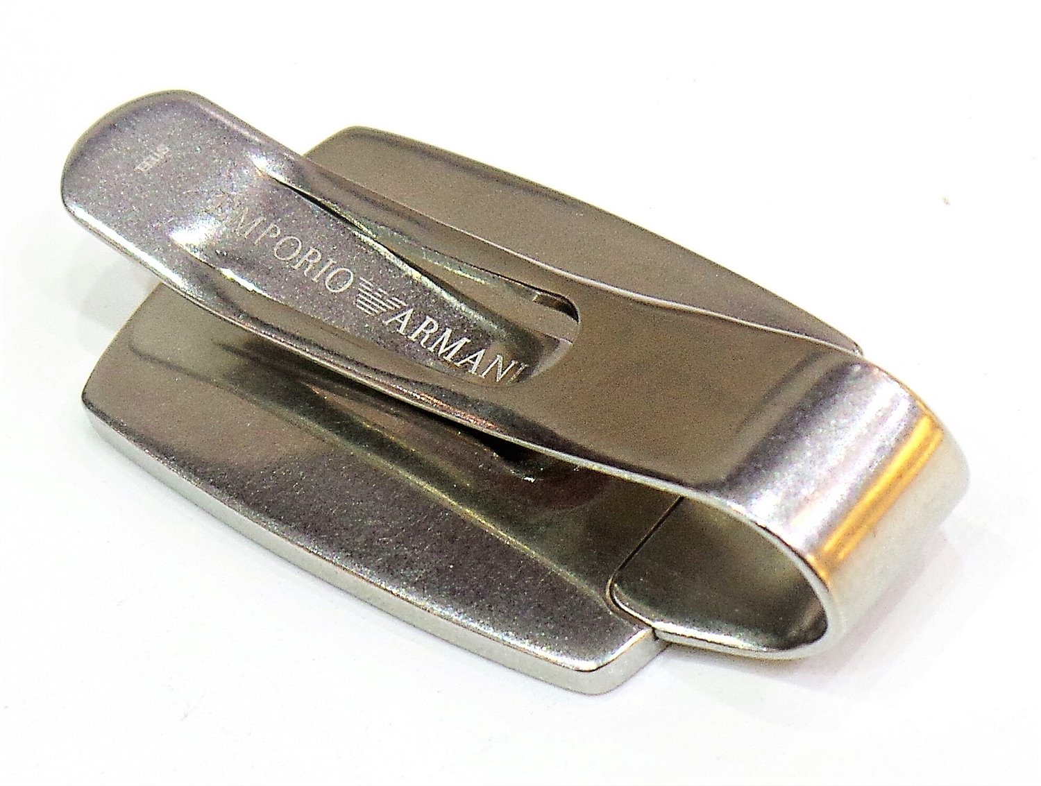 Portafogli Piccola Pelle Uomo Fermasoldi in argento con logo inciso Oro Giorgio Armani Field and Swamp Very well made.