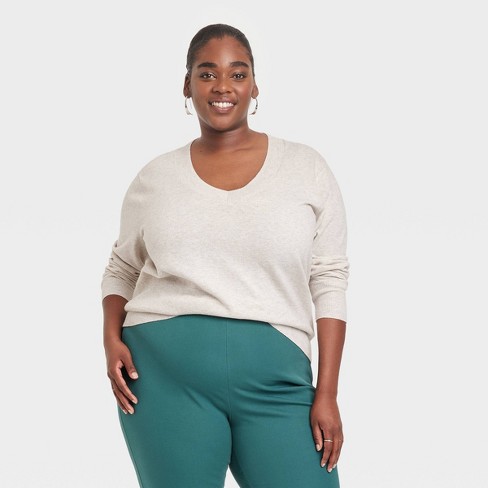 Women s Fine Gauge V neck Sweater A New Day Oatmeal Xxl Target Very well made.