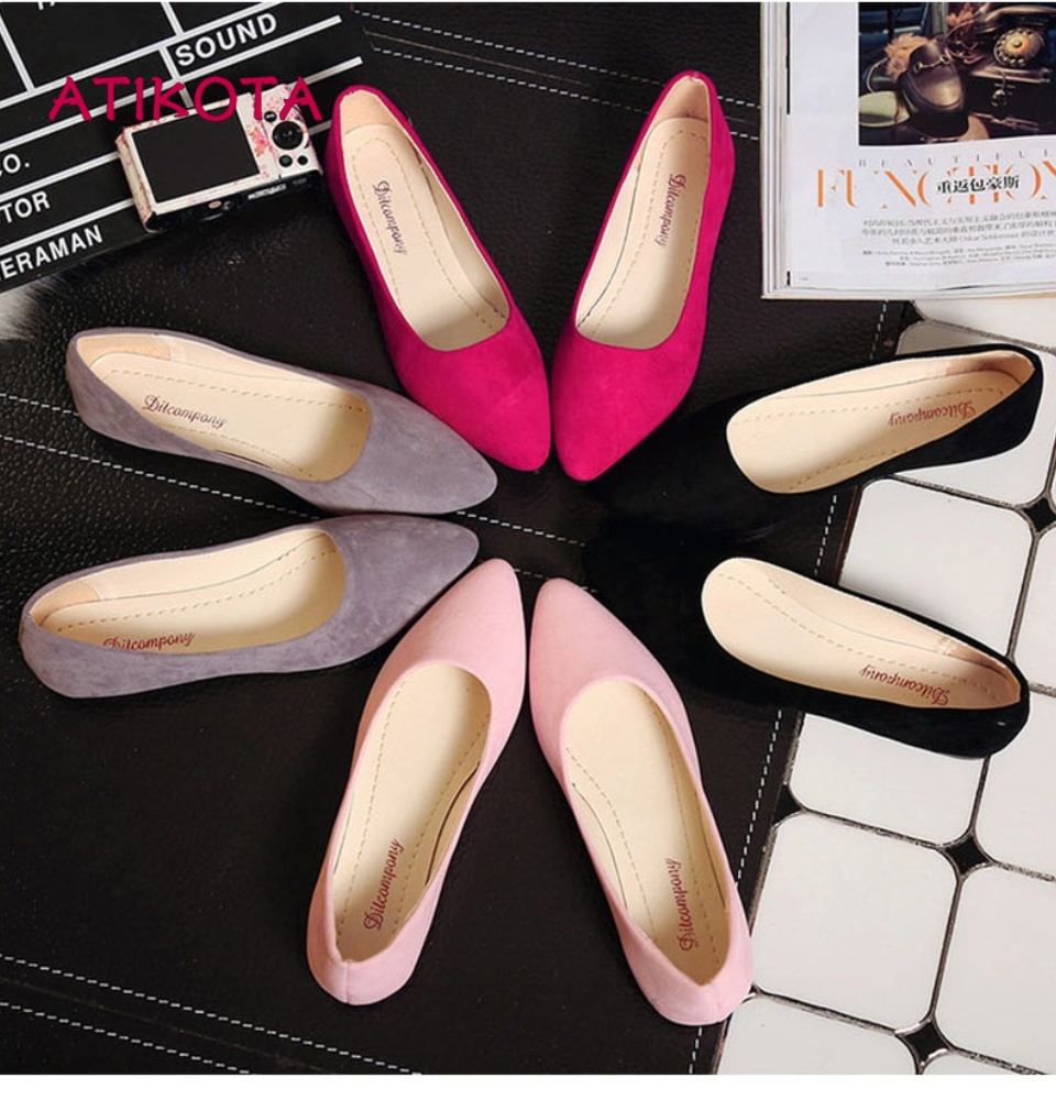 Women s Casual Flat Shoes Suede Leather Ladies Pointed Shoe ekcT Very well made.