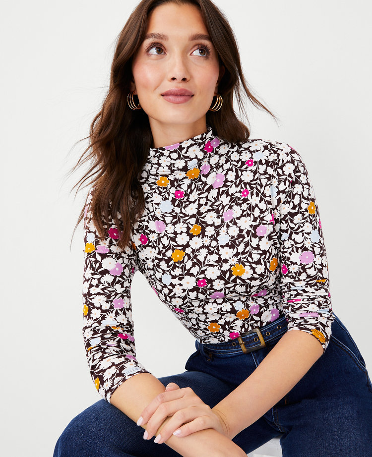 Aurelia Turtleneck Larkspur Blue Floral Jersey Turtleneck Top Very well made.