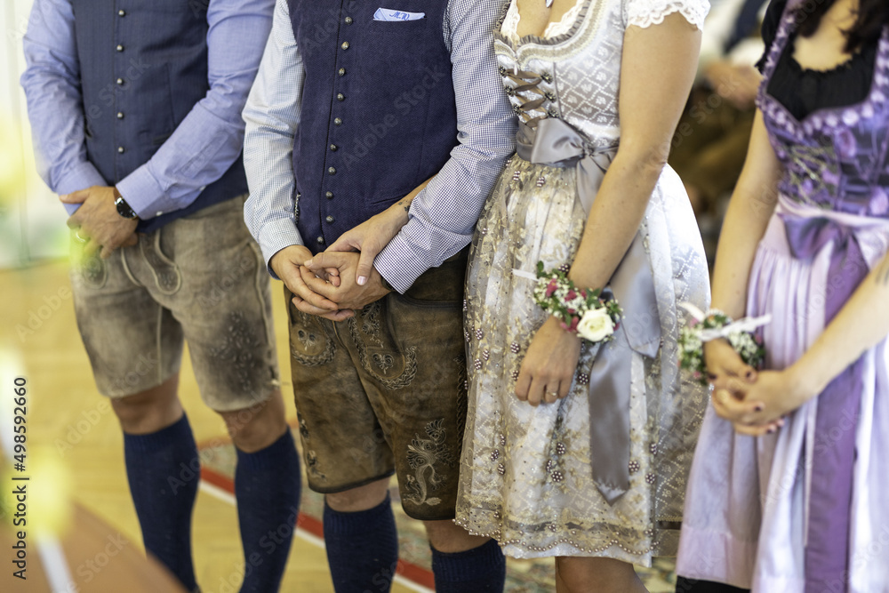 Closeup of traditional german clothes lederhosen and dirndl dress Very well made.