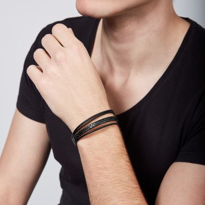 Black Leather Multi Strand Bracelet JF03389040 Fossil Very well made.