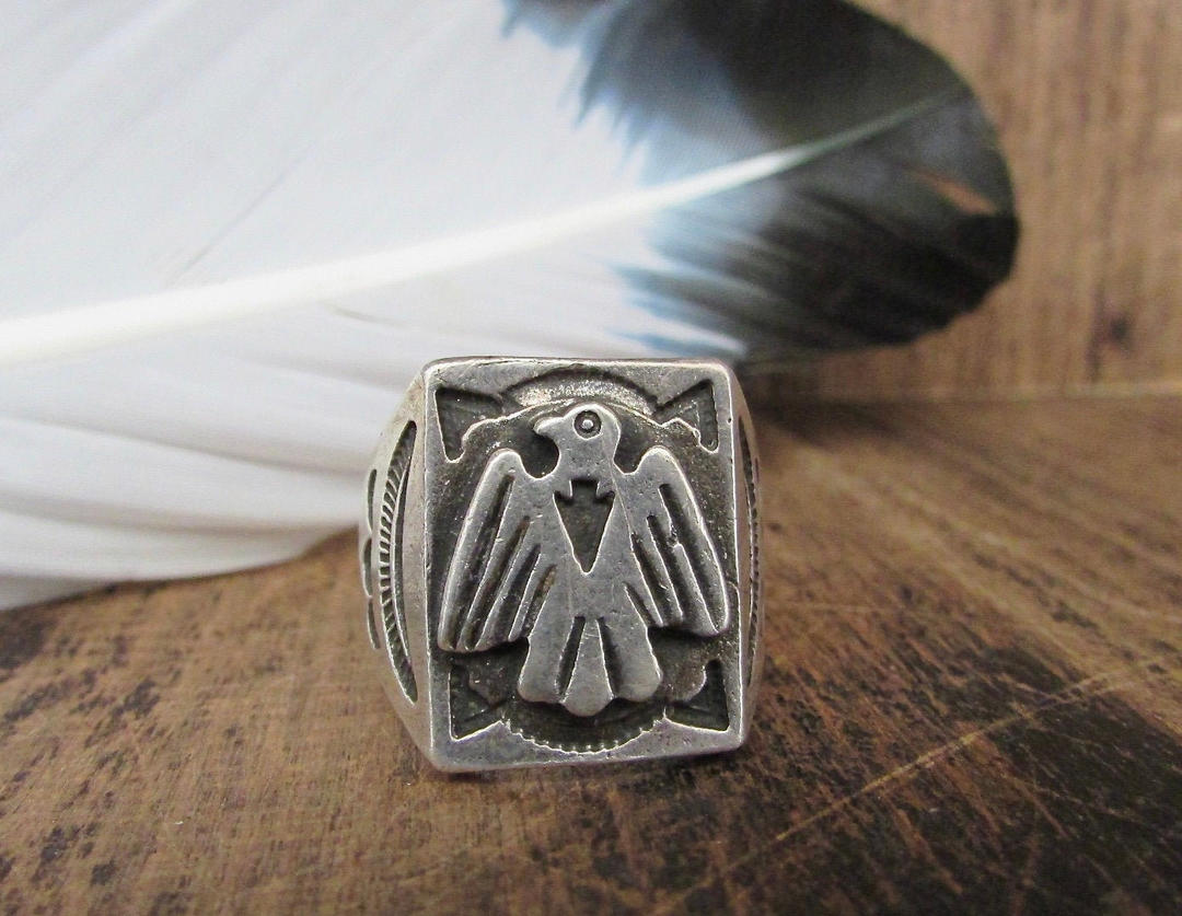 FRED HARVEY Era 50s Thunderbird Silver Ring 1950s Mens Very well made.