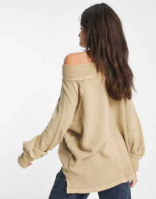 FREE PEOPLE Womens Beige Ribbed Trim Long Sleeve Mock Sweater Size M Very well made.