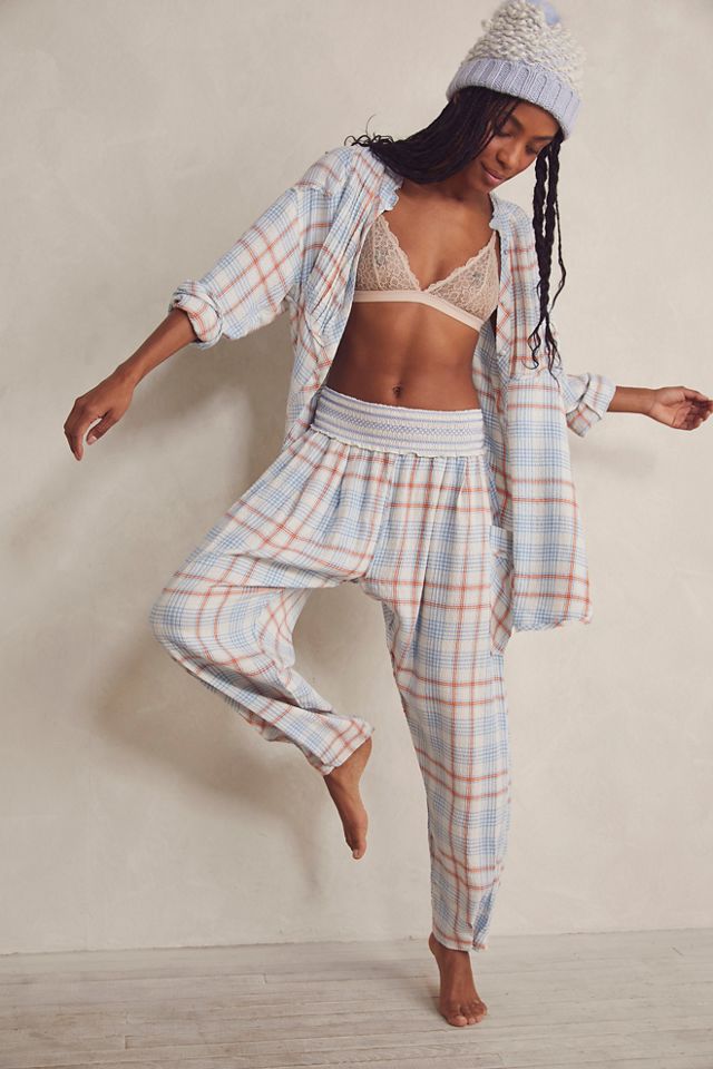 Free People Sunset Strip Plaid Pants Pleated Distress Slouchy Blue Very well made.