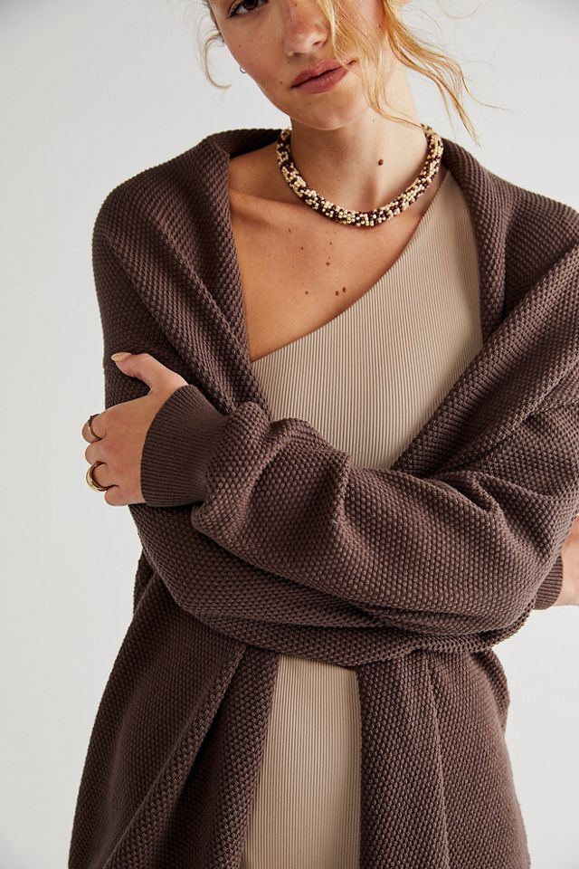 Free People Finely Maxi Ribbed Long Wool Cardigan Brown Large Very well made.
