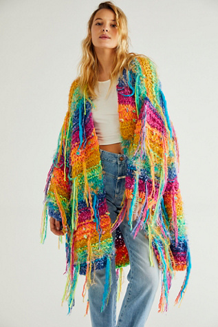 Handmade Recycled Plastic Fringe Shrug Rainbow Jianhui London Very well made.