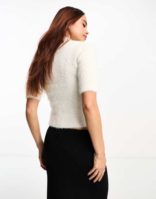 Miss Selfridge lash knit funnel neck short sleeve top in cream ASOS Very well made.