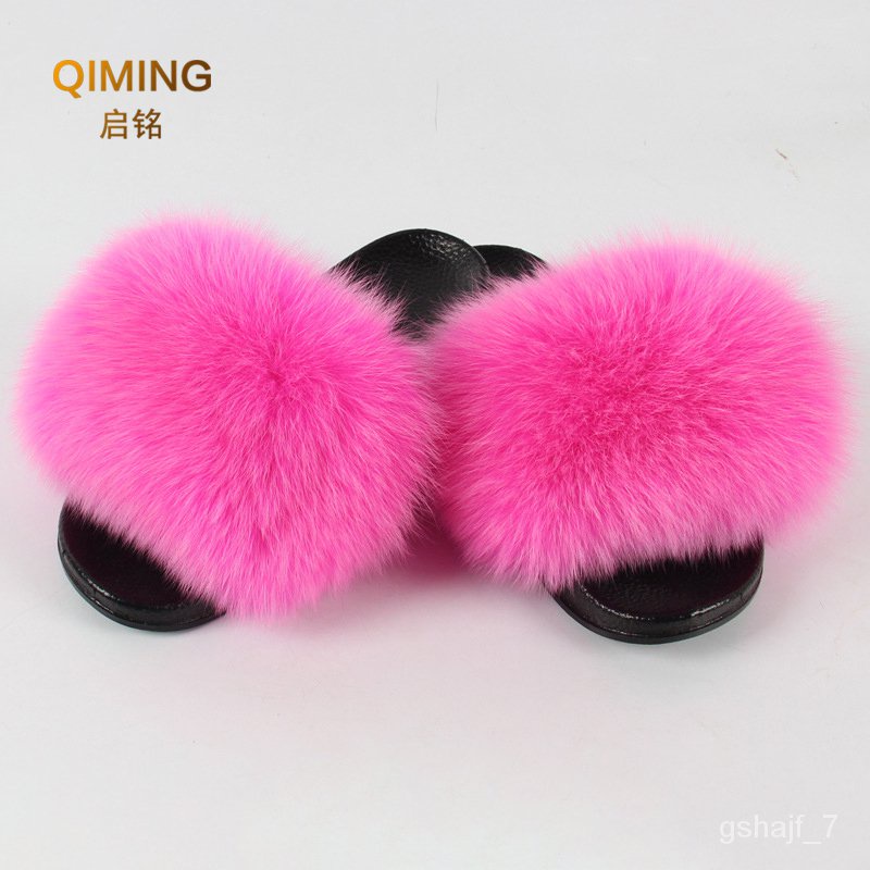 On sale Women Summer Fluffy Fox Fur Slippers Flat Non Slip Solid Very well made.
