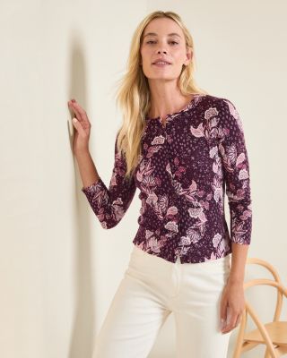 GARNET HILL Cardigan S Merino Wool Floral Crop Button Front Long Very well made.