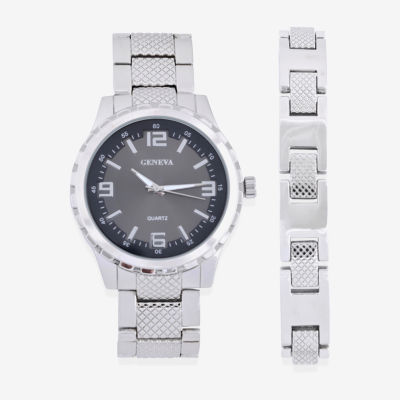 Geneva Mens Silver Tone Stainless Steel 2 pc. Watch Boxed Set Very well made.
