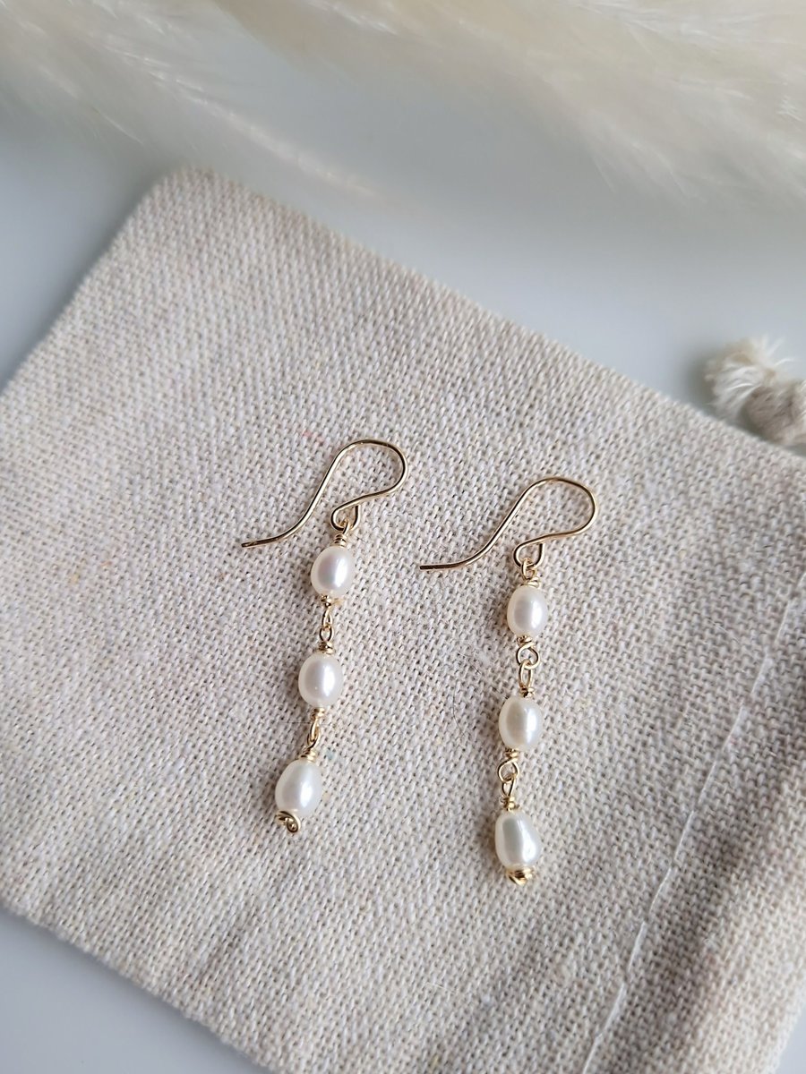 2 Pearls Long Pearl Earrings genuine Cultured Freshwater Pearl Very well made.