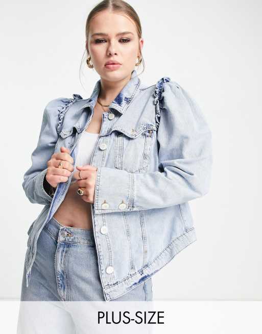 River Island Plus Giacca di jeans con maniche a sbuffo azzurra Very well made.