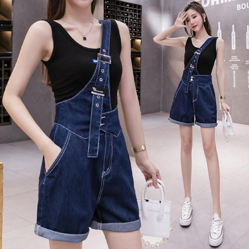 Korean Style Fashion Small New One Shoulder Denim Overalls Shorts Very well made.