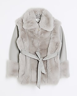 Girls Sectioned Faux Fur Jacket in Grey Very well made.