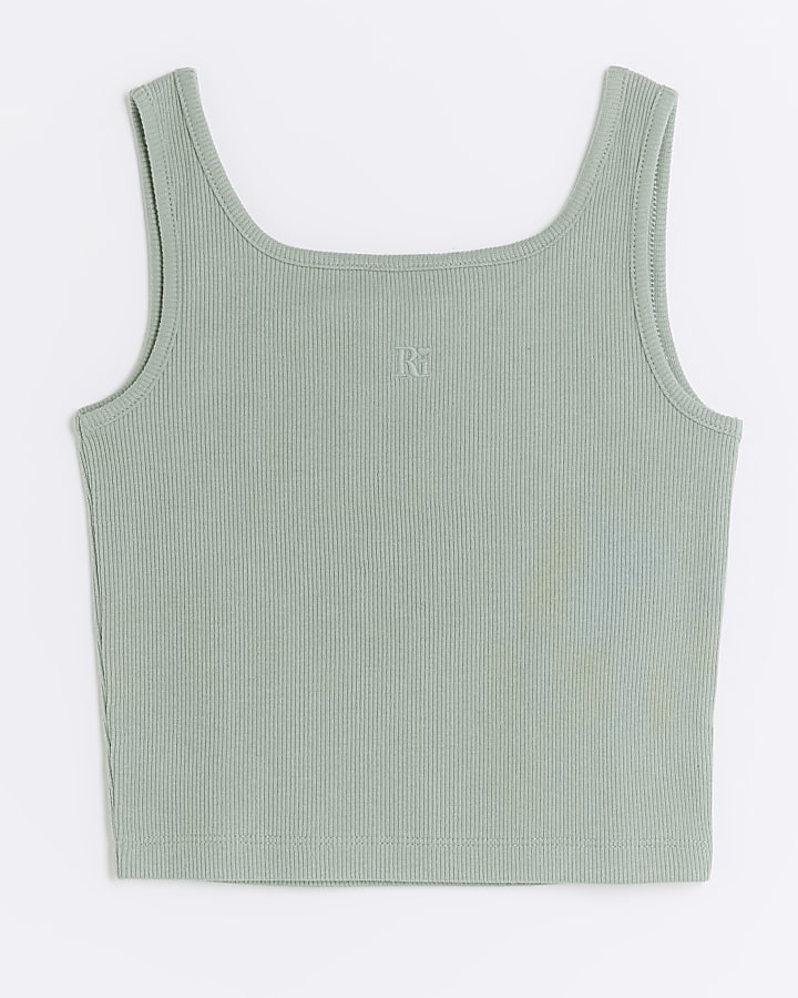 Girls khaki rib embroidered logo crop vest River Island Very well made.