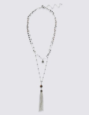long beaded necklace with grey tassel Bead Your Face Handmade Very well made.