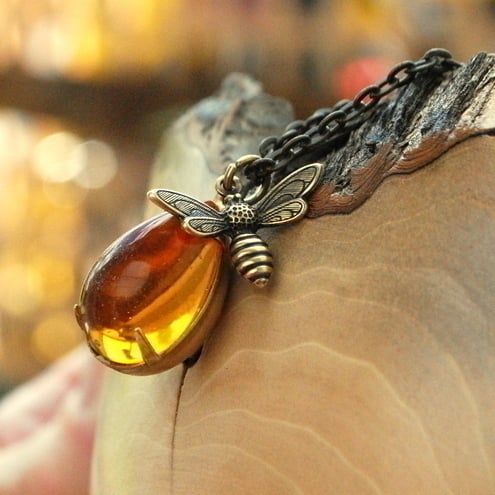 Honey Bee Necklace. Wire Wrapped Briolette Charm Necklace. Honey Very well made.