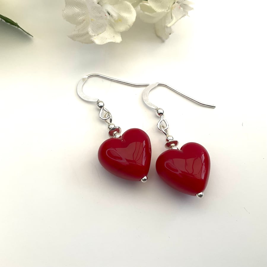 GlassOfVenice Murano Glass Heart Earrings Ruby Red Very well made.