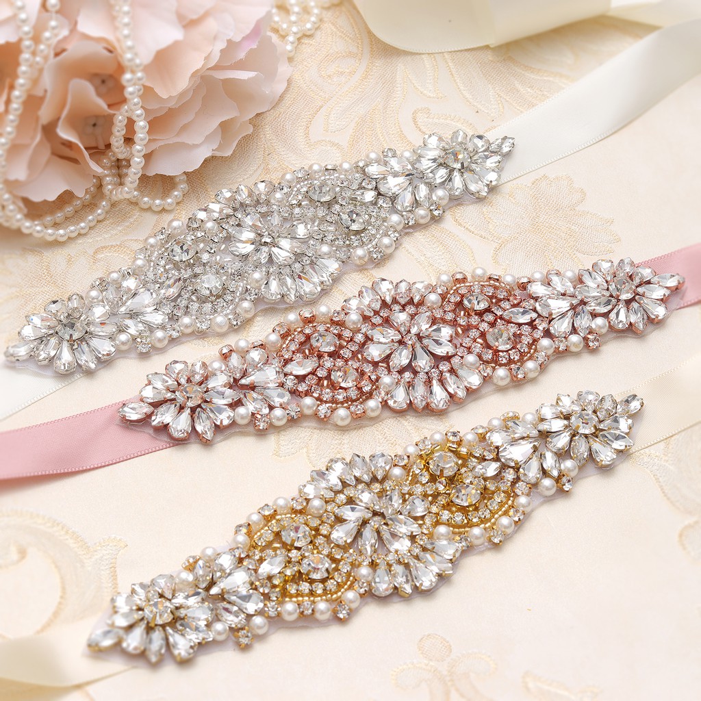 Wedding Bridal Belt Gold Silver with Rhinestone Crystal Dress Belts Sashes Handmade Waist Belt Waistband Satin Ribbon Very well made.
