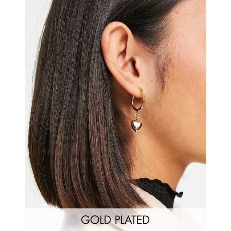 ASOS DESIGN 14k gold plated hoop earrings with puff heart charm Very well made.